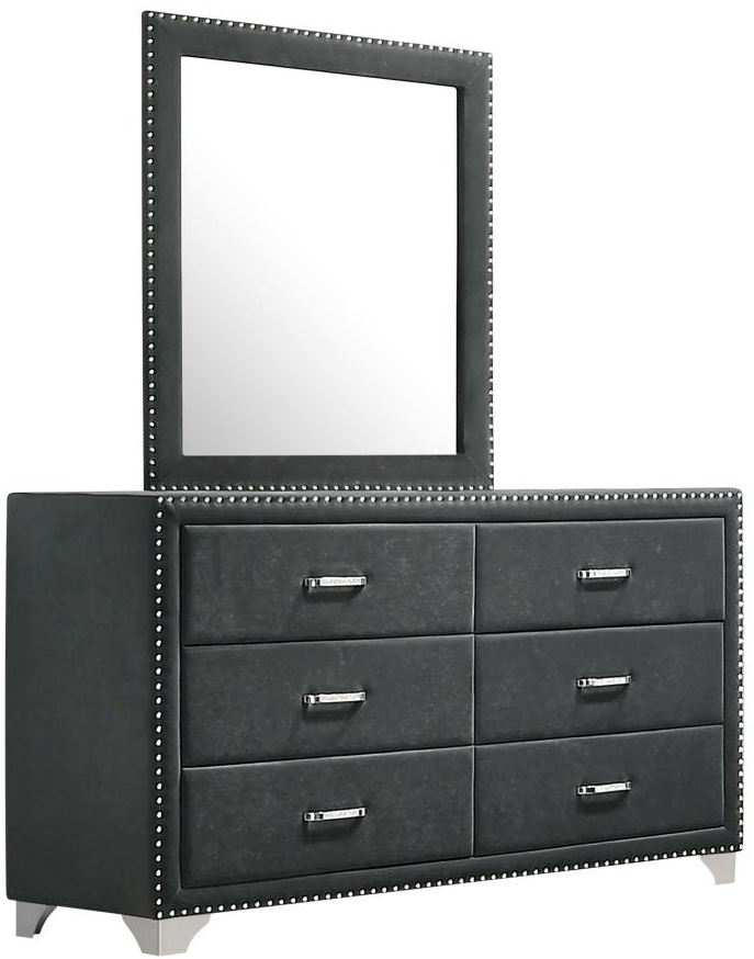 Revitalize your sleeping space with this eye-catching and elegant velvet-upholstered dresser, a statement piece that starts conversations. Six spacious drawers, accented with nailhead trim, offer ample storage, while the tapered legs enhance its stunning regal design.Read More