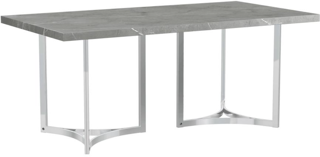 This rectangular dining table features a sleek gray top paired with a modern chrome base. It offers a sturdy surface and contemporary appeal, making it a stylish and functional centerpiece for any dining area.Read More
